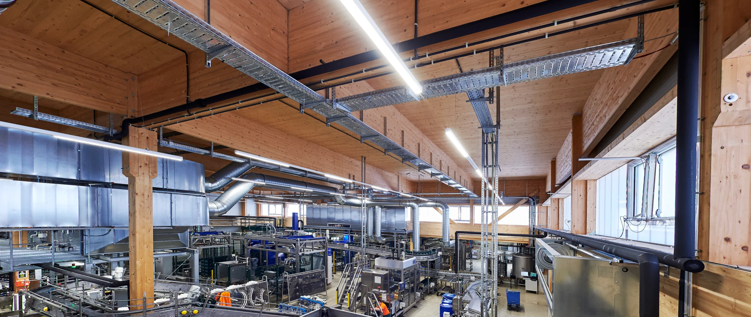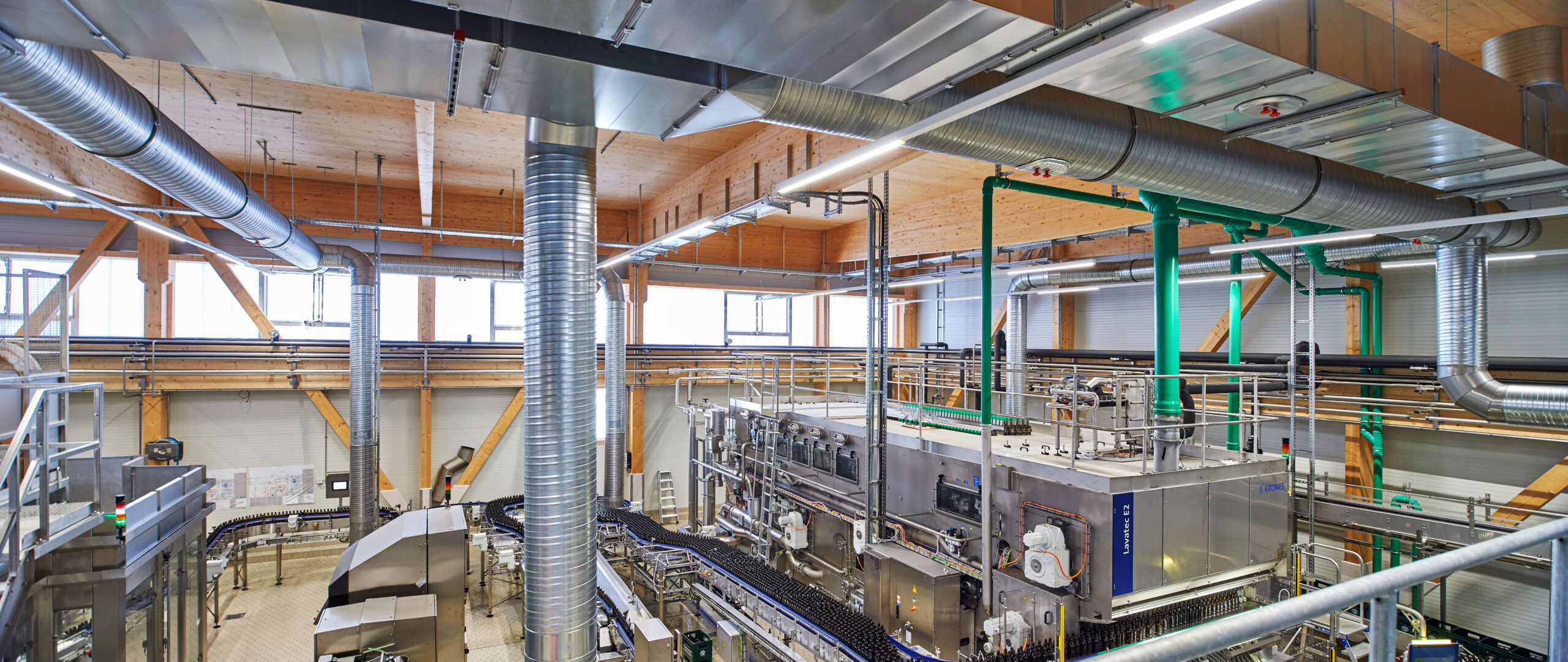 In Alpirsbach im Nordschwarzwald liegt die im 11. Jahrhundert von Benediktiner Mönchen gegründete Alpirsbacher- Klosterbrauerei. Diese wird seit 1877, bereits in vierter Generation, von der Familie Glauner privatwirtschaftlich weitergeführt. Auf der bestehenden Abfüllhalle sollte ein weiteres Stockwerk für die Beherbergung einer neuen Abfüllanlage gebaut werden. Die Aufgabe stellte in statischer Hinsicht eine besondere Herausforderung dar: Auf eine bestehende Decke mussten extreme Lasten aufgebracht werden. Die Flaschenwaschmaschine bringt im Betriebszustand eine Masse von 78 Tonnen auf. Mit Inbetriebnahme werden dort am Tag bis zu 1.300 Hektoliter Bier in einem Turnus von Rund 25.000 Flaschen oder 140 Fässern pro Stunde, durch die neue Anlage abgefüllt.