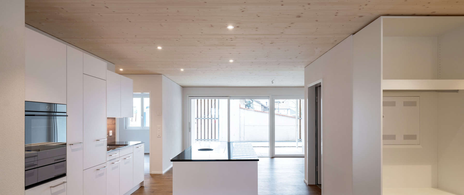 Das Projekt Obstgarten in Würenlingen umfasst zwei Mehrfamilienhäuser mit insgesamt zwölf Mietwohnungen, realisiert in einer Kombination aus moderner Brettsperrholzbauweise (CLT) und traditionellem Holzelementbau. Die Liftschächte sowie die angrenzenden Wandbereiche wurden als präzise vorgefertigte Elemente im Werk unseres Kunden produziert, um höchste Maßgenauigkeit und eine effiziente Montage vor Ort zu gewährleisten.
